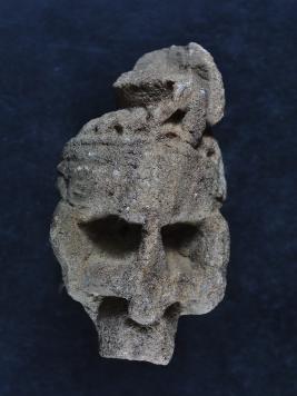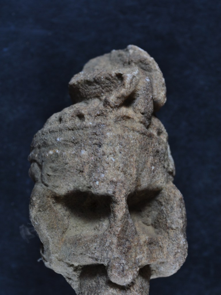 It s a Fragment of pillar made of sand stone and colour is brownish. It s deep design and incise design on it. It is badly damaged and all sides are broken. Many scratch and rubbing on the surface.