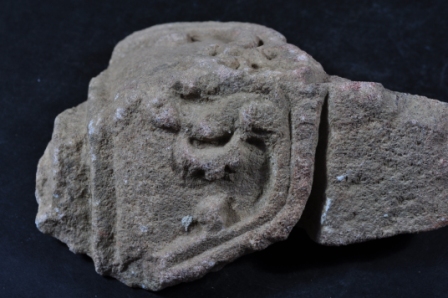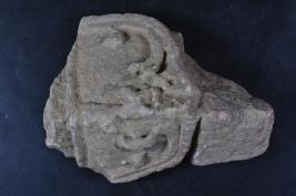 It s a Fragment of pillar made of sand stone and colour is brownish. It is deep lines, leaves and incise design on it. It s all sides are broken. Many scratch and rubbing on the surface.