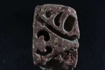 It s Fragment of object made of terracotta. It is well fired. Its colour is red. It s well decorated and design is clearly visible. All side are broken. Many scratch on it. Rubbing on the surface. Deposition of dust and dirt. Surface is rough and flaking on it.