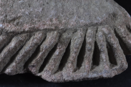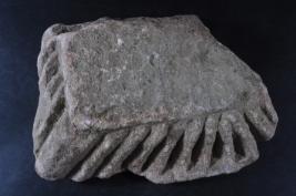 A fragment architectural member decorated with incised design.