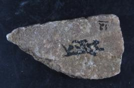 Architectural member decorated with incised design.