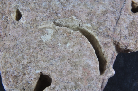 Architectural member decorated with floral design.