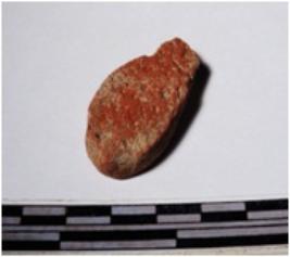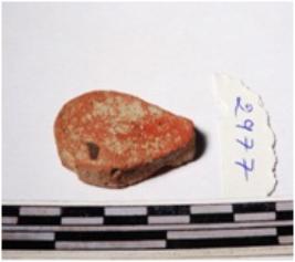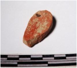 | Description / विवरण | A terracotta inlay piece, leaf shaped of smooth surface. |