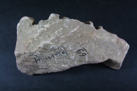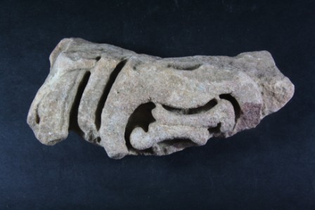 The image has been identified as a piece of Architectural member and done in sandstone. It s all sides are mutilated but incised design is clearly visible. Condition is not good and front surface is raised. The broken piece of the sculpture is lost beauty because whole surface are rough with many scratch.