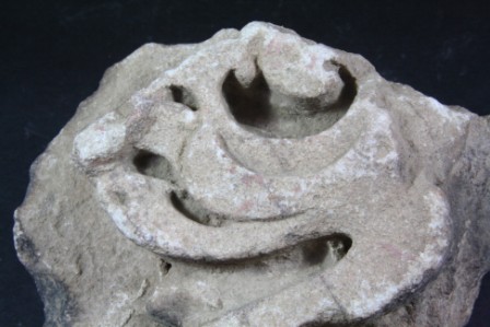 Fragment of stone,decorated with floral design,it is carved in high relief.