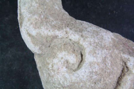 Fragment of stone object,decorated with floral design,it is carved in high relief.
