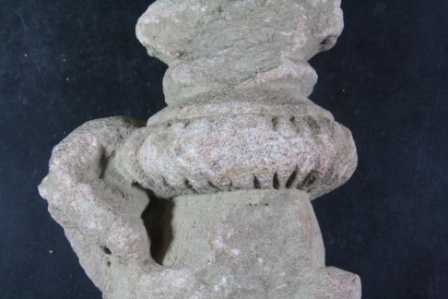 Fragment of Pillar made of stone, Color is brownish. It is well decorated and design is clearly visible. All sides are broken. Deposition of dust and dirt. Rubbing on the surface and flaking on it.