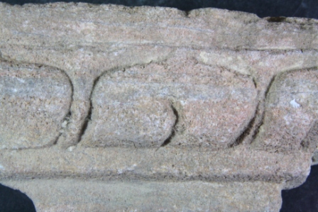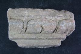 It s a piece of pillar made of stone, Colour is brownish. It is well decorated and design is clearly visible. All sides are broken. Deposition of dust and dirt. Rubbing on the surface and flaking on it.