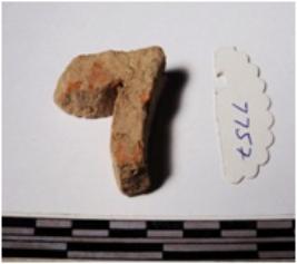 | Description / विवरण | A terracotta inlay piece V like shaped, of smooth surface. |