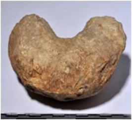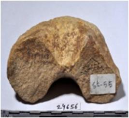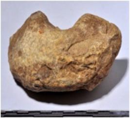 | Description / विवरण | A fragment of a stone door jam circular in shape of rough surface. |