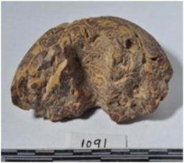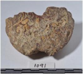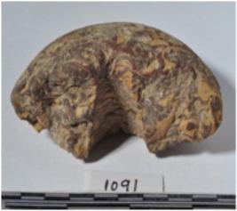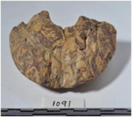 | Description / विवरण | A fragment of a stone ring stone, circular shaped having hole and rough surface. |