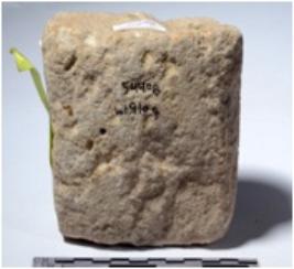 | Description / विवरण | A stone door jam rectangular in shape and section having depression in the centre of rough surface. |