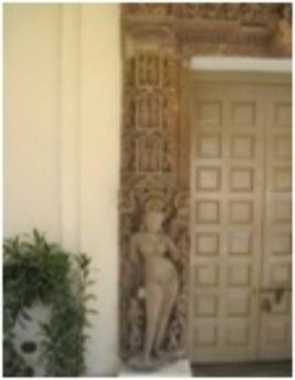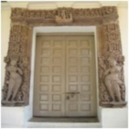 | Description / विवरण | Door way, consisting of two jambs and a lintel, fixed at the entrance of the Museum. The lintel shows the saptamatrikas, the Navagrahas and the Hindu Trinity, Siva in the Ardhanarisvara form standing in the centre. Figure of Ardhanarisvara partly restored, Hands of both ganga and Yamuna broken, Crack in the middle of the lintel. Right side jamb - The jamb show the usual elegantly carved figures of the River goddess Ganga with Makarmukha & Naga figure. Female attendant hold garland, three mithun figure in separate niches musician & dancers shown on both side of niches. Left side jamb - The jamb show the usual elegantly carved figures of the River goddess Jamuna with Tortoise & Naga figure. Female attendant hold garland, three mithun figure in separate niches musician & dancers shown on both side of niches. |