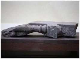 | Description / विवरण | Portion of the front wall of a Hindu temple with a decorative pillar relief with intricate ornamentation. The upper half of the pillar has torana decoration.- Above the pillar, cornice of the lintel is visible. Stone Black Basalt |