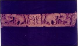 | Description / विवरण | Architectural fragment, doorsil showing mandarak in the middle flanked on either side by a male holding a water vassel, elephant and lion fighting together. Both the animals are rided with a rider. |