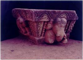 | Description / विवरण | Architectural fragment, kakshasana decorated with kirtimukhas and elephants with frontal and side view on two sides. Damaged and broken. |