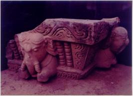 | Description / विवरण | Architectural fragment, kakshasana- decorated with kirtimukhas and elephant with frontal view on two sides. Damaged and broken. |