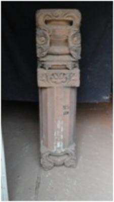 | Description / विवरण | Pillar having square base, fluted shaft and square top. It shows pot and foliage design at the base and top. Rope and bell design on the shaft part. |