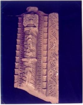 | Description / विवरण | Architectural member of a temple, pilaster showing the following sakhas from Lt. To Rt. Padmasakha, stambhasakha with the female figure in standing posture and pot and foliage design at the top ; a padmasakha and then a bahyasakha. Heads of the female figures are broken. |