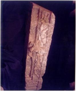 | Description / विवरण | Architectural part of a temple, lintel showing scroll work in the lower portion, Nagasakha in the middle and flying gandharva in the upper portion. In the centre a flying gandharva is supporting a Sivaling or kiritmukuta on the sinister end a male musician is standing within the niche. The dexter end is broken. |