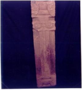| Description / विवरण | Architectural fragment showing pilasters part with pot and foliage at the top and base, octagonal shaft with chain and bell. It is partially mutilated. |