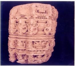 | Description / विवरण | Architectural fragment of a pillar richly carved with male and female deties, kirtimukh, vidhyadhar and pot & foliage design. |