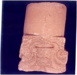 | Description / विवरण | Fragment of a pillar showing square base with pot and foliage and round shaft. |