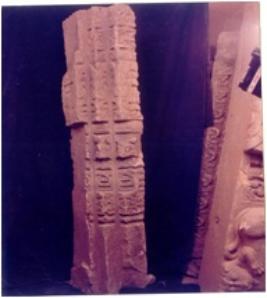 | Description / विवरण | Architectural member of a temple showing pilaster decorated with kirtimukhas and floral design. Mutilated. |