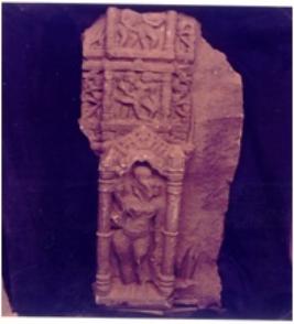 | Description / विवरण | Architectural member, pilaster showing river goddess Yamuna in standing posture within the pilastered niche. Her head, breasts, hand and legs are broken. The shaft part shows a mithuna sakha and two vyal sakhas one each on either side. Broken. |