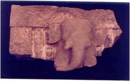 | Description / विवरण | Architectural fragment of kakshasana showing an elephant head. Tusks of the elephant is broken. |