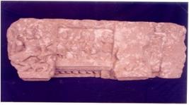 | Description / विवरण | Architectural member, lintel part, showing Siva seated in lalitasana on Nandi in the middle. In his lower left hand he holds a kamandalu while lower right hand is in anhayamudra. He holds a trishula in his upper Rt. hand while upper left hand and his head are broken he wears usual ornaments. To its left are five Navagrihas including Rahu & Ketu. Further left are traces of Garuda on which rode Vishnun, next to it is a Gana holding dagger. Its outer portion is decorated with scroll work. Half of lintel is broken. |