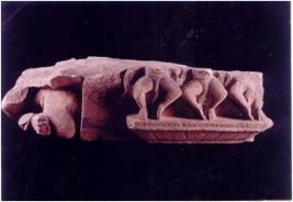 | Description / विवरण | Architectural part of a pillar capital showing kichak on one side and three dancing figure on other side. Heads of all the figures are missing. |
