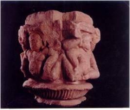| Description / विवरण | Architectural member, pillar capital showing four armed flying kichakas in all the four directions partly broken. |