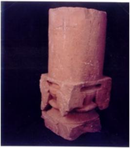 | Description / विवरण | Architectural fragment of a pillar showing square base decorated with pot & foliage design & having round shaft ,mutilatd and broken. |
