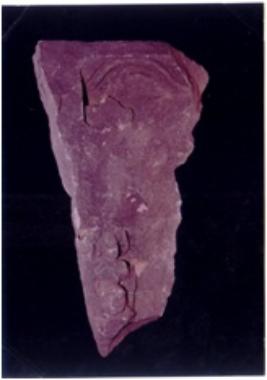 | Description / विवरण | Architectural part showing two human heads and floral design in the upper part. |
