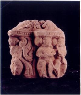 | Description / विवरण | Architectural fragment showing a couple of dancer and another figure on its side. Defaced and mutilated. |