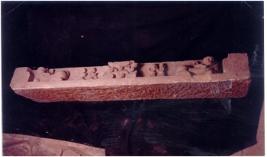 | Description / विवरण | Architectural part the doorsil, depicting an udambar tree in the centre flanked by two couples of kneeling devotees on either side and two lions an either side damaged. |