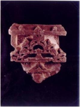 | Description / विवरण | Architectural part of a temple, showing a compleate chaitya arch motif and a human head in the lower part. |