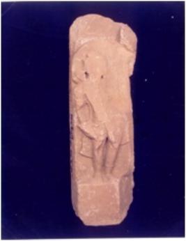 | Description / विवरण | Architectural fragment showing remains of a standing deity chopped off. |
