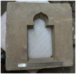 | Description / विवरण | Perforated window screen with an arched rectangular niche. |