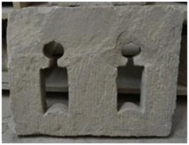 | Description / विवरण | Perforated window screen with two rectangular arched niches. Outer line of one niche is decorated with floral pattern & other is plain. |