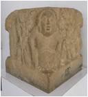 Squre capital of a pillar relived with yaksha figure at the corner and lotus in the middle on all the four side.