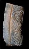 | Description / विवरण | Part of an arch usally found in arched entrance of a secular building within the Bidar fort. The curved moulded block, has a protruded and polished central portion which is decorated with typical arabesque design depicting foliage with three petalled floral motif at the central part. Either side of decorated portion is provided with plain border having a groove. |