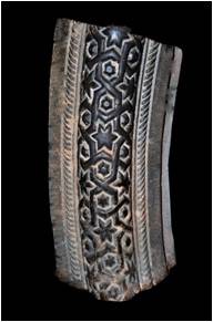 | Description / विवरण | Part of an decorated entrance arch of a secular building. The fragment in its central part exhibits typical arabesque design with geomatric pattern with six sided stars within haxagonal boxes flanked by mouldings depicting rope design and plain offsets at both the sides. |