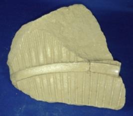 | Description / विवरण | Stone fragment of Ashokan pillar, irregular in shape with some incised line designs on one surface while others are rough. |