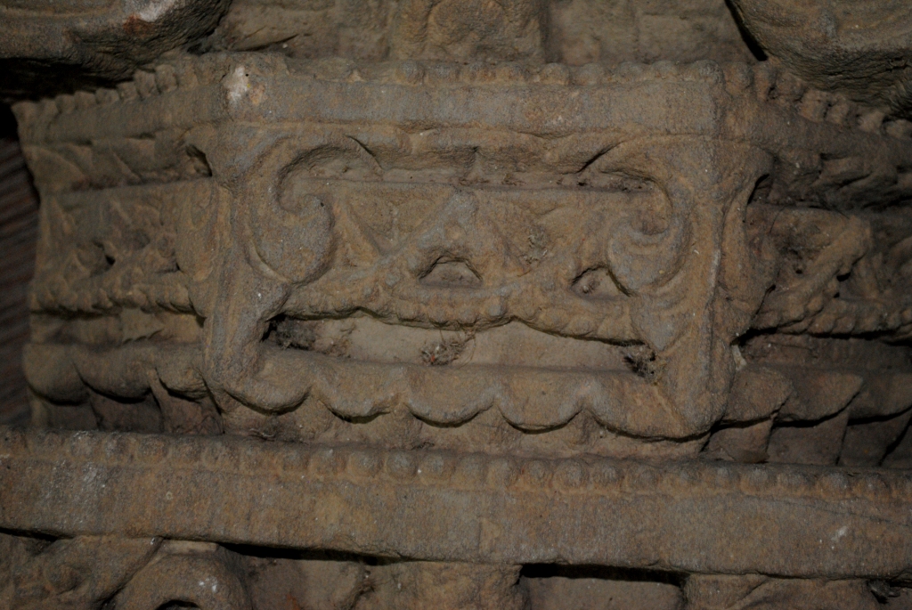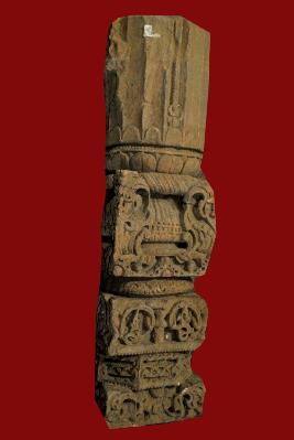 It is a pillar made of sand stone. It may be used as a decoration or achitecture member for the monoments. Its bottom part is decorated with floral pettern and upper part has straght line.