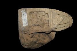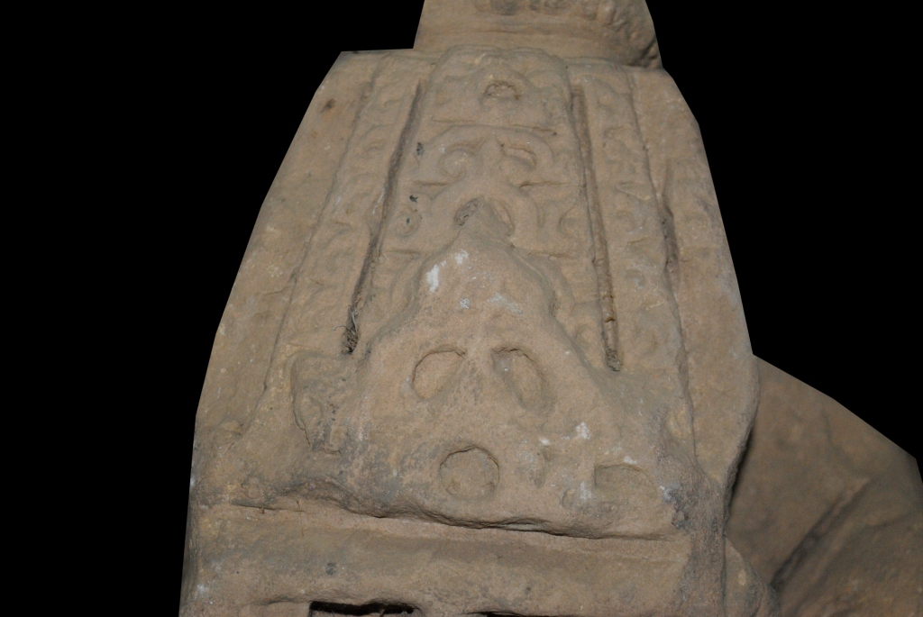 It is a sculpture of mini shikara. Its shape like a temple. It has two part lower part has a figure but it not clear visible while upper side has decorated incised design on it. Its left and right side also two figure but not clearly visible. Deposition of dust and dirt of it.