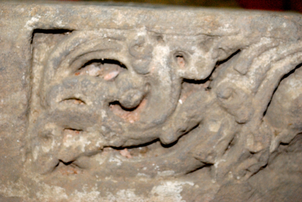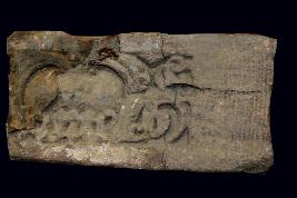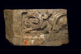 It is a architecture member made of sand stone. It may be used for build structure and monuments. It has one side is decorated with flower motif while other is plane. These are same crack line on its surface.