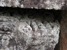 | Description / विवरण | The huge stone block is fashioned in arch style. Several motifs as creepers, lotus petals, beaded designs etc are carved out on the outer surface. A kirtimukha is executed on the stone. |