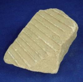 | Description / विवरण | Fragment of stone, irregular in shape with rough surfaces. Only one surface has embossed line designs. It was probably a fragment of a chhatri of Mauryan period. |